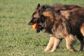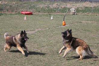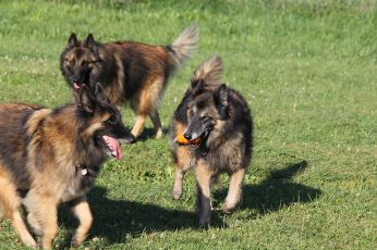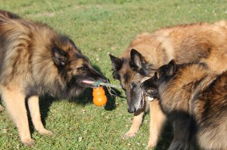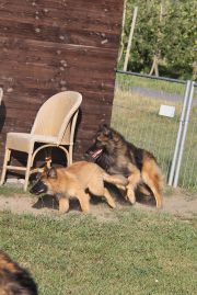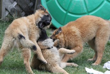 Akash qui s'interpose entre ses deux chiots Kyphx et Ksar