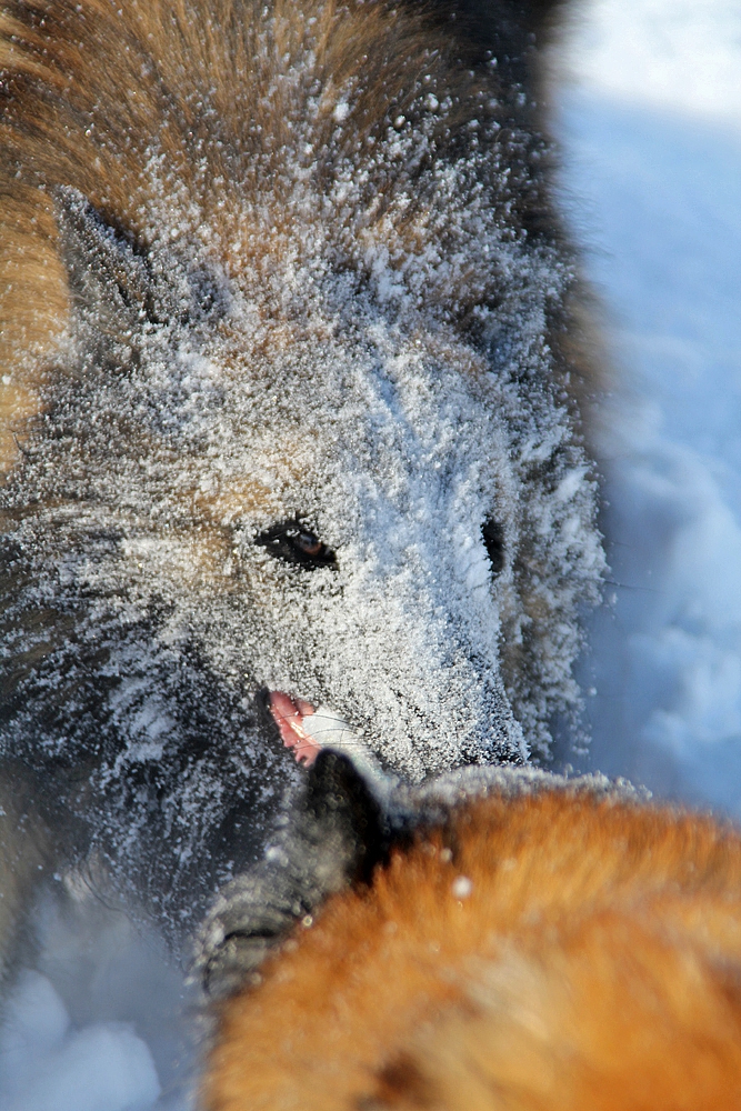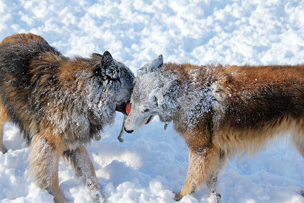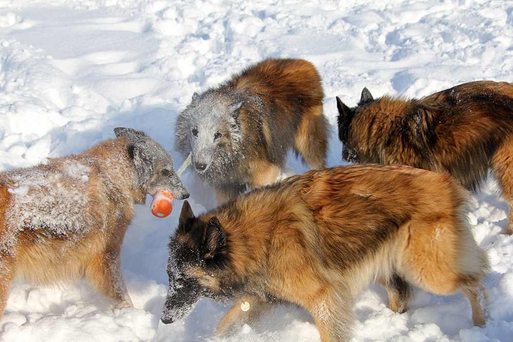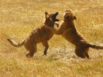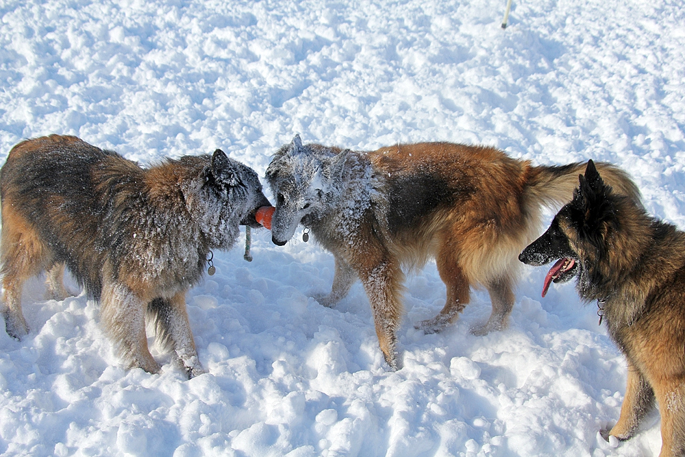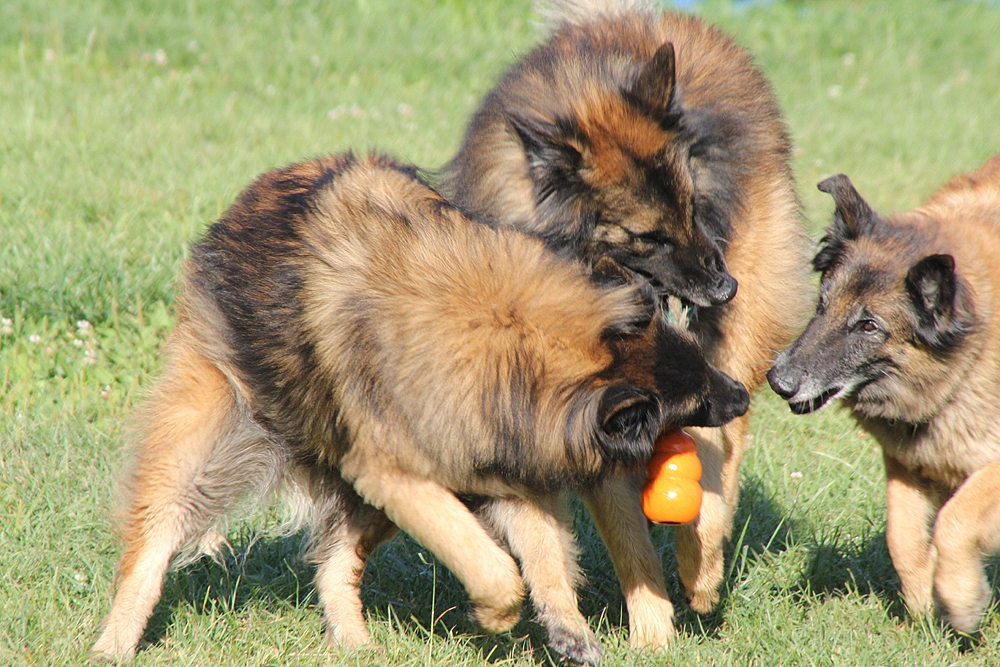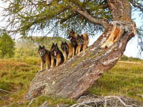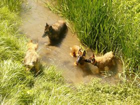 c’est parfois assez impressionnant : coup de pattes, on montre les dents, course poursuite… mais la meute est bien codée et ils ne se font jamais de mal.