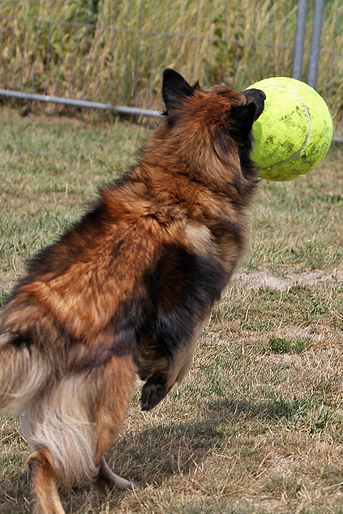 ha.... ce ballon..... qu'est-ce que c'est drôle, fascinant, mais pas facile de le prendre....