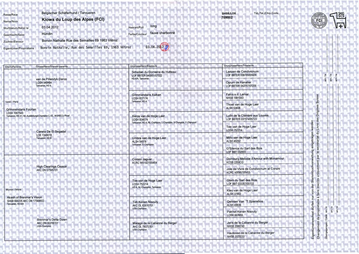 Le pedigree de Kiowa en image