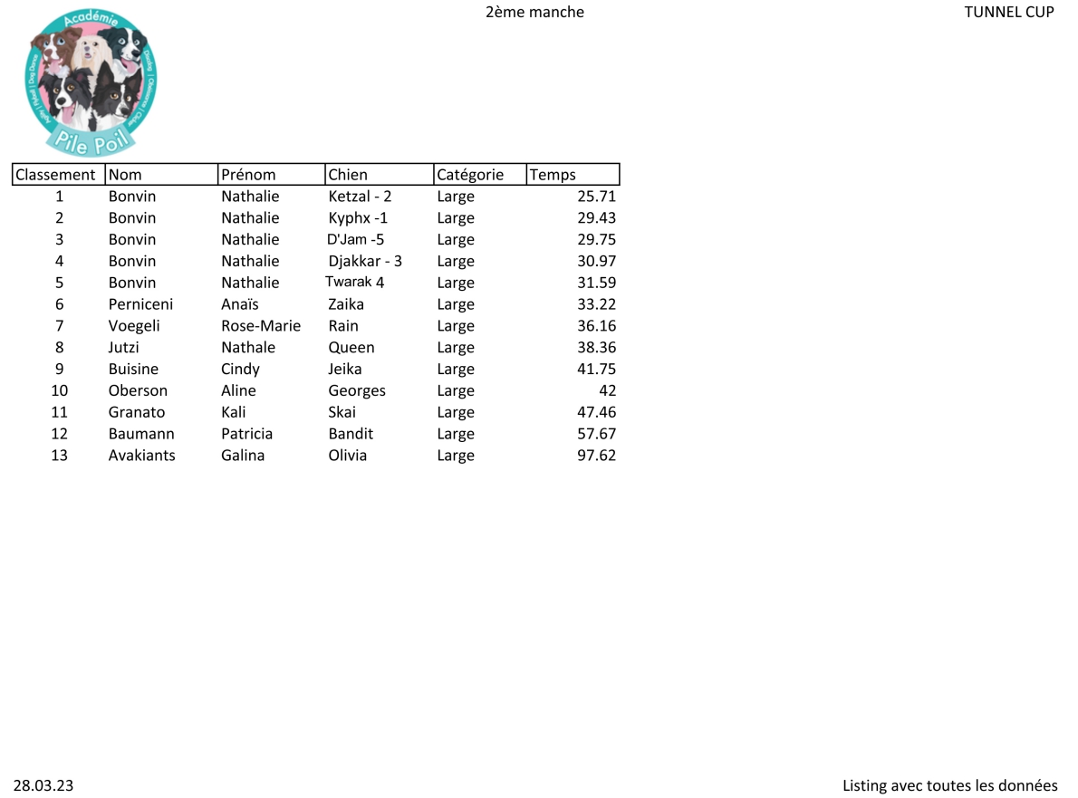 26 mars 2023 - concours amical Tunnel Cup - Pile Poil - Bouveret